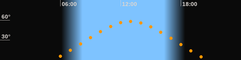 Höchster Stand (Kulmination)12:57 Uhr (h = 58,1°)