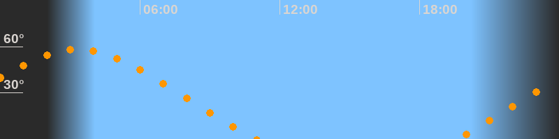 Aufgang19:33 Uhr im Nordosten (αAz = 58,6°)