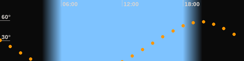 Höchster Stand (Kulmination)19:42 Uhr (h = 58,1°)