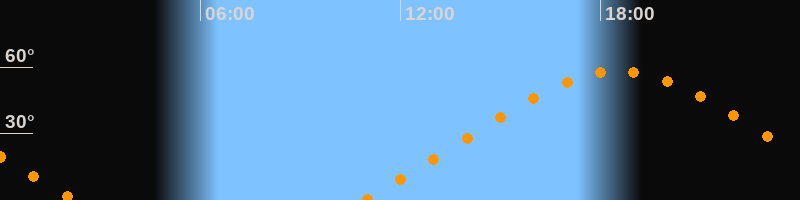 Höchster Stand (Kulmination)18:32 Uhr (h = 58,1°)