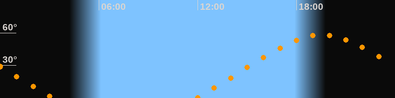 Höchster Stand (Kulmination)19:32 Uhr (h = 58,1°)