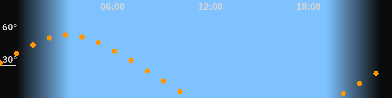 Aufgang20:23 Uhr im Nordosten (αAz = 58,6°)