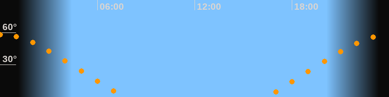 Höchster Stand (Kulmination)00:00 Uhr (h = 58,1°)