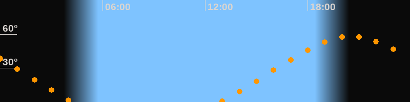 Aufgang12:50 Uhr im Nordosten (αAz = 58,6°)