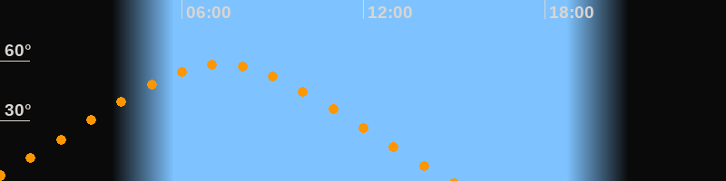 Aufgang23:32 Uhr im Nordosten (αAz = 58,6°)