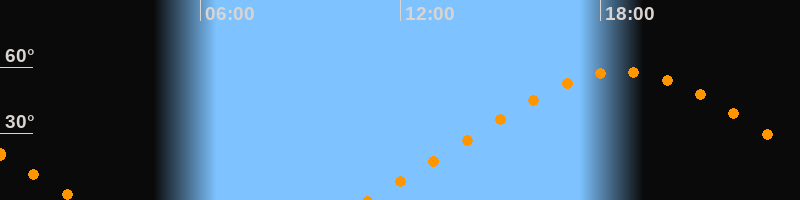 Höchster Stand (Kulmination)18:39 Uhr (h = 58,1°)