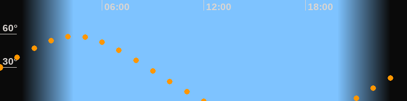 Aufgang20:36 Uhr im Nordosten (αAz = 58,6°)
