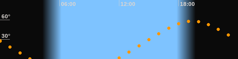 Höchster Stand (Kulmination)19:23 Uhr (h = 58,1°)