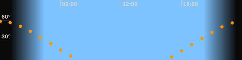 Höchster Stand (Kulmination)00:03 Uhr (h = 58,1°)