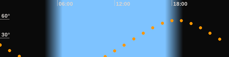 Höchster Stand (Kulmination)18:29 Uhr (h = 58,1°)