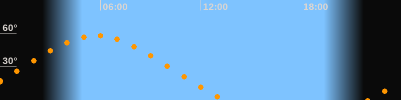 Höchster Stand (Kulmination)05:44 Uhr (h = 58,1°)