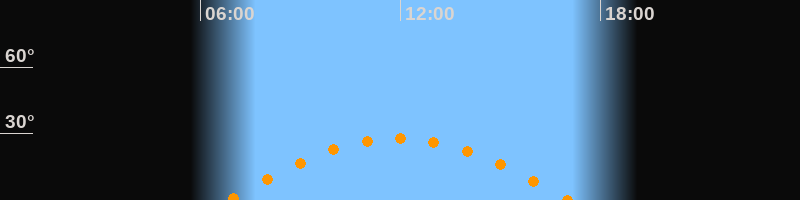 | Höchster Stand (Kulmination) | 11:56 Uhr (h = 27,8°) |
