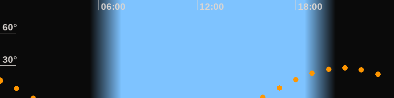 | Untergang | 02:04 Uhr im Westen (αAz = 252,4°) |