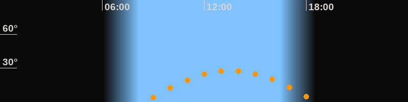 | Höchster Stand (Kulmination) | 13:33 Uhr (h = 27,8°) |