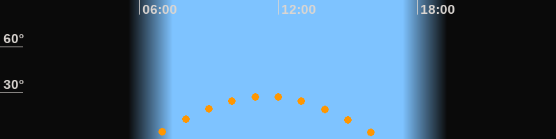 | Höchster Stand (Kulmination) | 11:28 Uhr (h = 27,8°) |