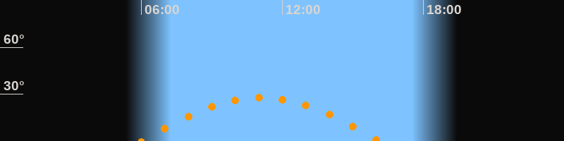 | Höchster Stand (Kulmination) | 11:04 Uhr (h = 27,8°) |
