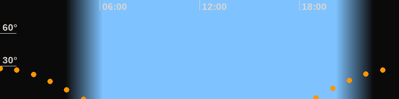 | Untergang | 05:03 Uhr im Westen (αAz = 252,4°) |