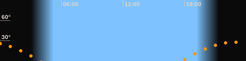 | Aufgang | 17:40 Uhr im Osten (αAz = 107,6°) |