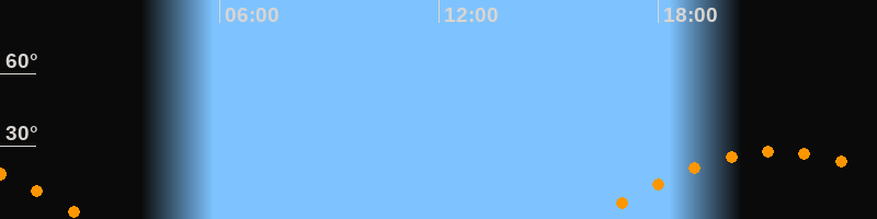 | Aufgang | 16:11 Uhr im Osten (αAz = 107,6°) |