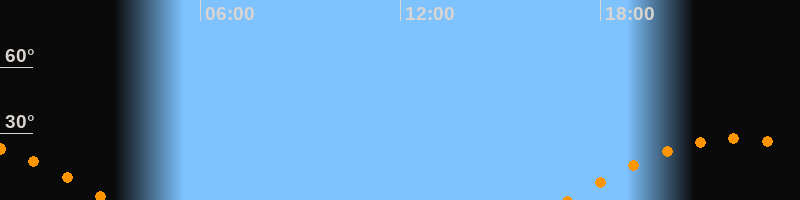 | Aufgang | 17:00 Uhr im Osten (αAz = 107,6°) |