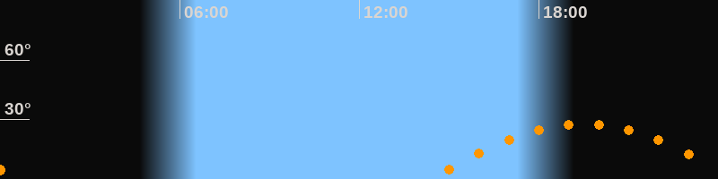 | Höchster Stand (Kulmination) | 19:28 Uhr (h = 27,8°) |