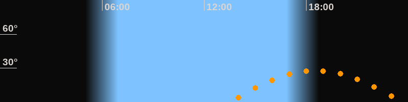 | Höchster Stand (Kulmination) | 18:33 Uhr (h = 27,8°) |