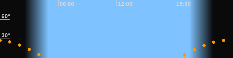 | Aufgang | 18:24 Uhr im Osten (αAz = 107,6°) |