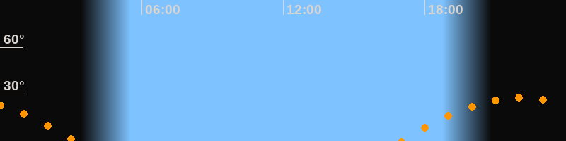 | Untergang | 03:13 Uhr im Westen (αAz = 252,4°) |