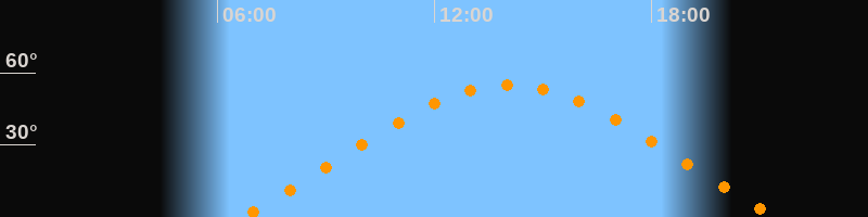 | Höchster Stand (Kulmination) | 14:03 Uhr (h = 55,1°) |