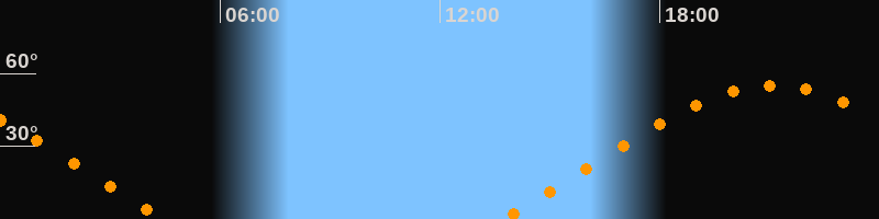 | Aufgang | 13:41 Uhr im Nordosten (αAz = 63,8°) |