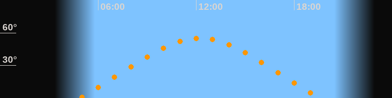 | Höchster Stand (Kulmination) | 12:13 Uhr (h = 55,1°) |