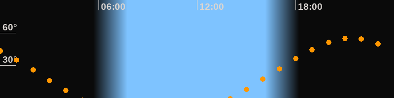 | Aufgang | 14:00 Uhr im Nordosten (αAz = 63,8°) |