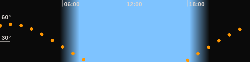 | Aufgang | 17:36 Uhr im Nordosten (αAz = 63,8°) |