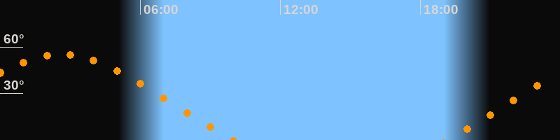 | Aufgang | 19:08 Uhr im Nordosten (αAz = 63,8°) |