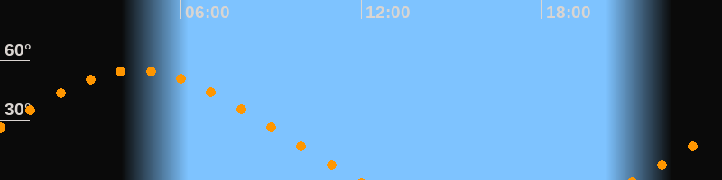 | Untergang | 11:54 Uhr im Nordwesten (αAz = 296,2°) |