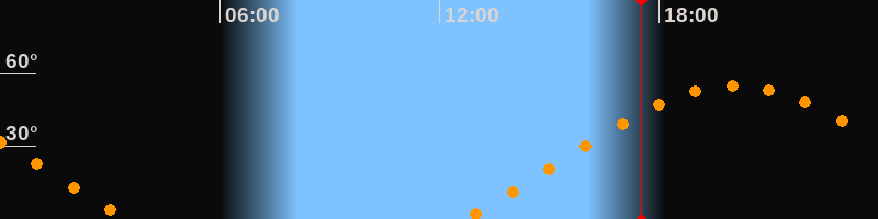 | Aufgang | 12:40 Uhr im Nordosten (αAz = 63,8°) |