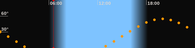 | Aufgang | 12:32 Uhr im Nordosten (αAz = 63,8°) |