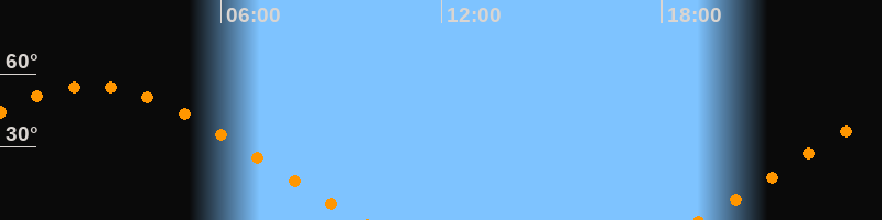| Aufgang | 18:59 Uhr im Nordosten (αAz = 63,8°) |