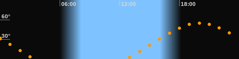 | Aufgang | 12:38 Uhr im Nordosten (αAz = 63,8°) |