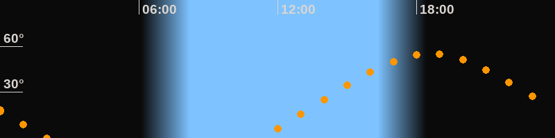 | Höchster Stand (Kulmination) | 18:36 Uhr (h = 55,1°) |