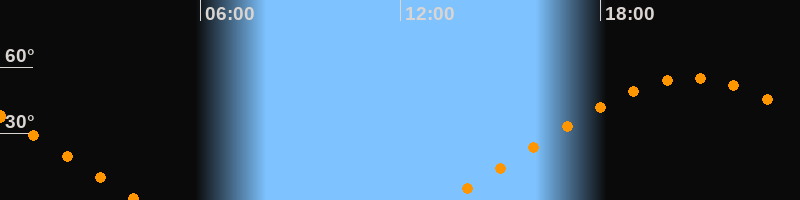 | Aufgang | 13:20 Uhr im Nordosten (αAz = 63,8°) |