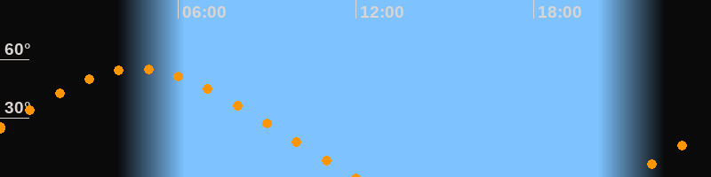 | Untergang | 12:01 Uhr im Nordwesten (αAz = 296,2°) |