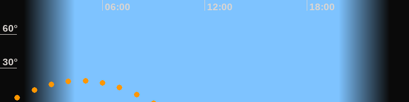 | Höchster Stand (Kulmination) | 04:41 Uhr (h = 19,2°) |