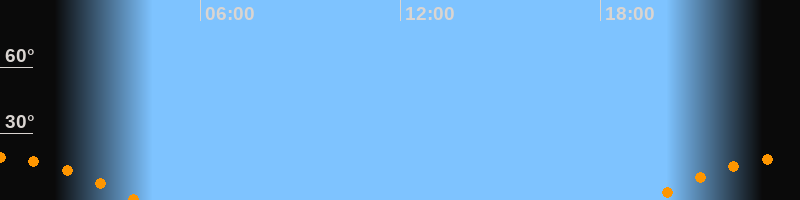 | Untergang | 04:07 Uhr im Südwesten (αAz = 238°) |