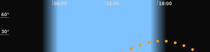 | Höchster Stand (Kulmination) | 18:23 Uhr (h = 19,2°) |