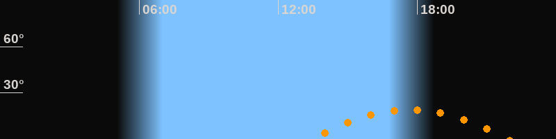 | Aufgang | 13:23 Uhr im Südosten (αAz = 122°) |