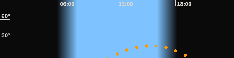 | Höchster Stand (Kulmination) | 15:23 Uhr (h = 19,2°) |