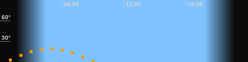 | Untergang | 09:07 Uhr im Südwesten (αAz = 238°) |