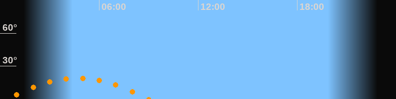 | Untergang | 08:59 Uhr im Südwesten (αAz = 238°) |