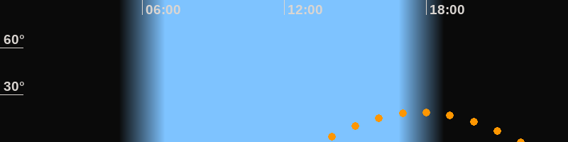 | Aufgang | 13:28 Uhr im Südosten (αAz = 122°) |